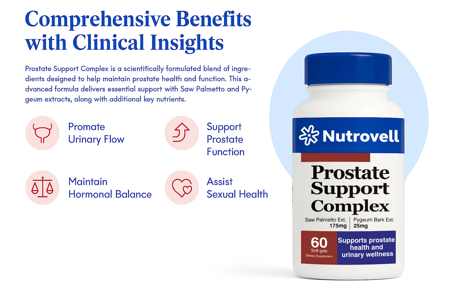 The softgel delivery format supports easy daily use and is designed to be taken with food. With 60 softgels per bottle, Prostate Support Complex offers a convenient two-month supply for ongoing nutritional support.