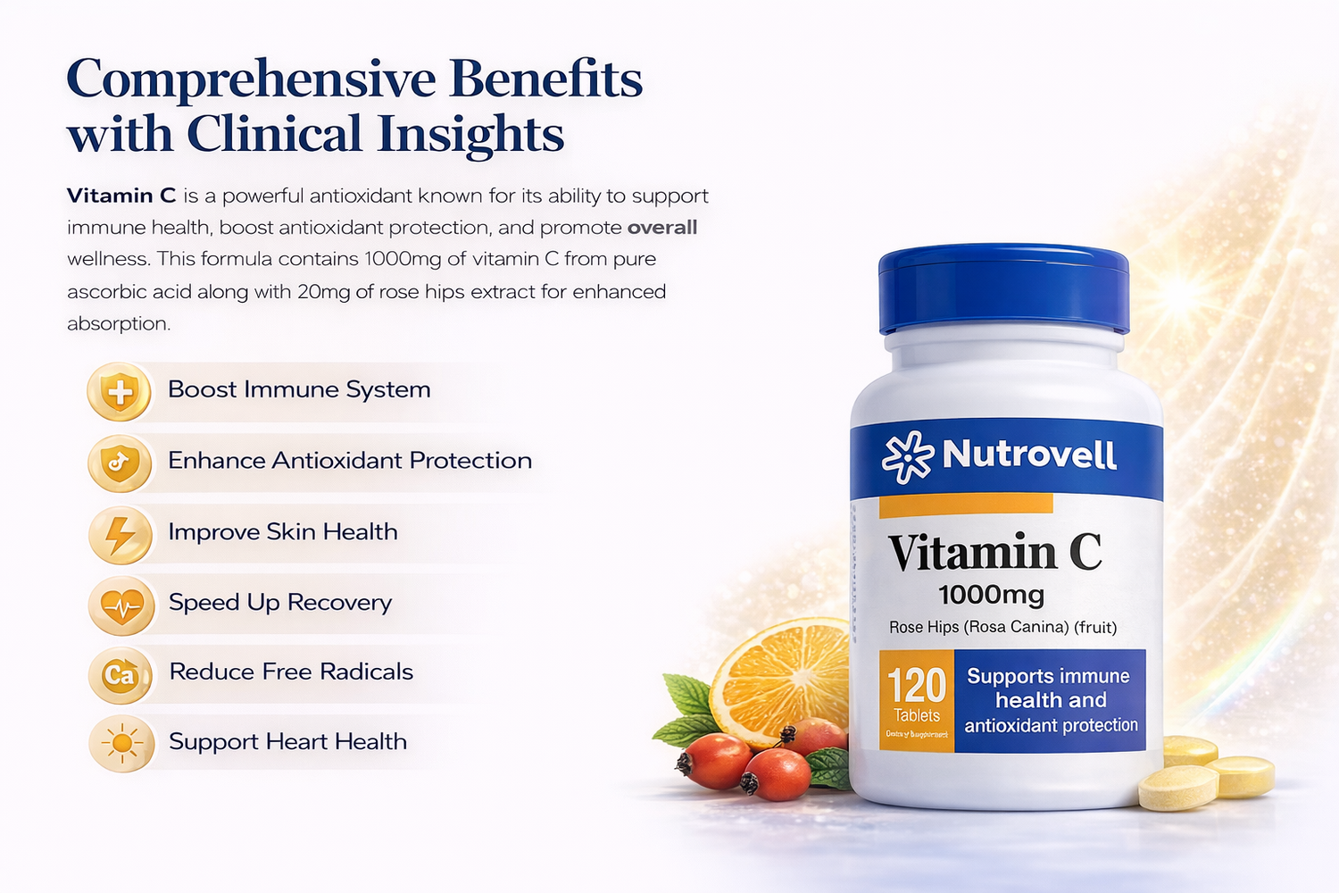 Supports Iron Absorption: Enhances the absorption of non-heme iron from plant-based foods as part of a balanced diet.